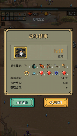 4、拾取一定的经验可以升级,每升一级可以从随机的三个技能中选择一个学习;