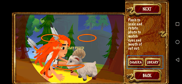 2、在这里点击camera开始实时照相,或者在library里找到并上传自己想要的图片,然后在这个界面把图片设置好位置,接着点击next;
