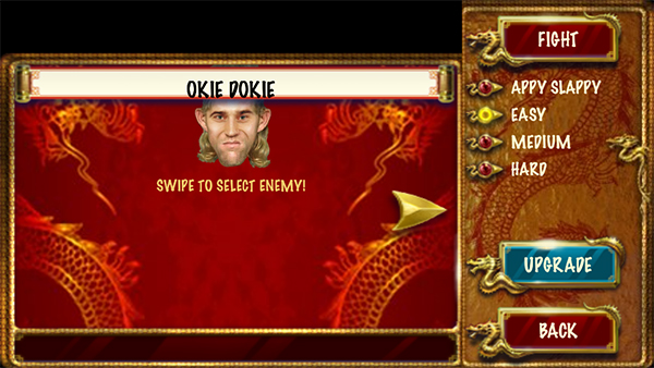 游戏中玩家会需要提供对方的照片,对方可以是动物、静态物体、也可以是人,你可以在游戏上挑战现实中不可能的事务和人物,在游戏中你就是主宰,你想怎么玩就怎么玩,针对玩家的挑战心理,游戏还为玩家准备了四个难度的挑战,大大满足了不同人群的不同需求,游戏进行时,有左右手、抵挡和脚踢四个选项在屏幕周围供你选择,当你准备好后就可以开打了,现实中无法发泄的人群、压力特别大的人群都适合这款游戏,感兴趣的小伙伴们就快来下载这款有趣的游戏吧!