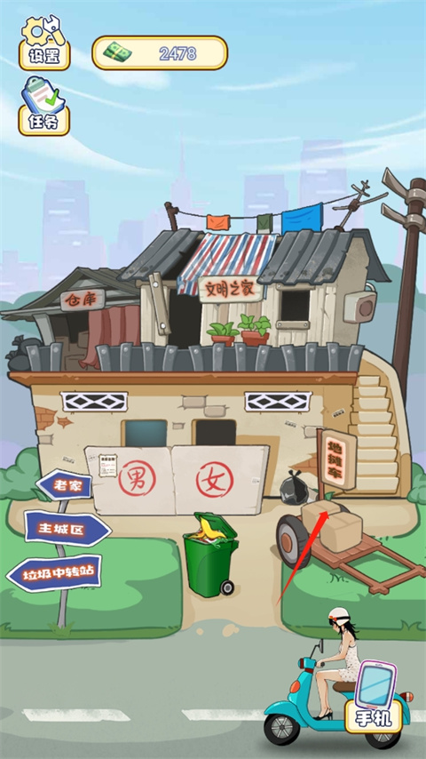 游戏中,玩家初期的赚钱方式只有到垃圾中转站中翻垃圾赚钱,同时你也会随机得到废弃物品,当废弃物品足够时,就可以开启推车摆摊赚取收益,然后再通过收益不断的发展其他的赚钱路线,最后成功发家致富。当然,在赚钱的同时你也要随时注意孩子的心情值、健康值等各项属性,防止她因为心情低落导致游戏出现be结局。