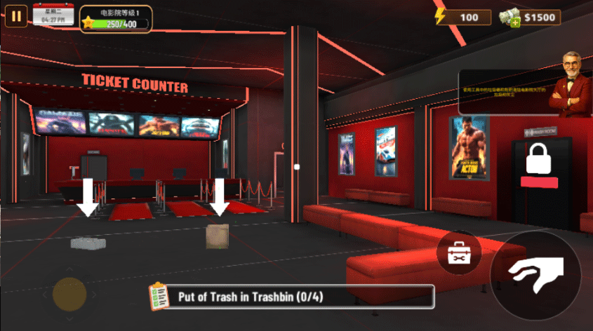 游戏里还有不少有趣的细节,比如维护电影院秩序的时候,碰到一些捣乱的人,就要果断掌掴他们,虽然有点夸张,但确实能增加互动感。另外,爆米花和饮料这些小食也是经营的重要部分,每次卖出一杯饮料或者一桶爆米花,都能感受到顾客的满足感。