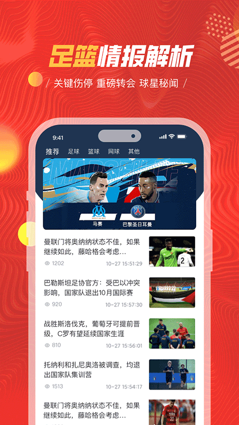 4、实时报道国内外足球篮球大事件,包括球员动态、赛事点评、花边新闻、深度分析等,让用户随时掌握体坛最新动态。