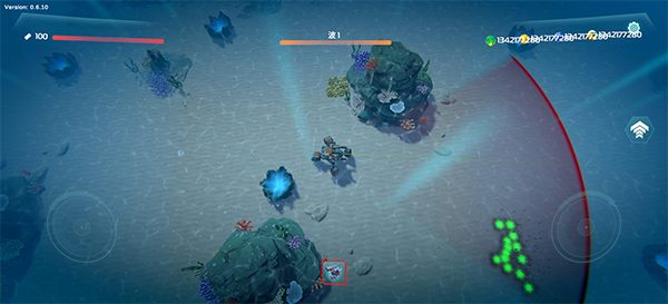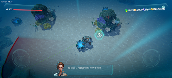 游戏中有等距3D图形、程序生成的洞穴、机甲定制、部落战斗等多种特色玩法。玩家可以选择采矿或杀戮两种不同的路线,在水下世界中冒险。塔防策略是游戏的一大亮点,玩家需要在基地周围布置防御设施,抵御海怪的攻击。通过挖掘矿石和宝石升级机甲武器和天赋,形成“探索-资源-强化”的循环成长体系。
