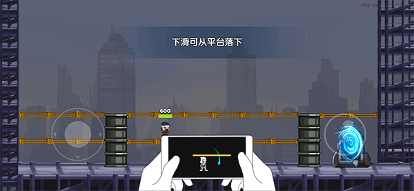 3、按住左侧虚拟摇杆下滑可从平台落下