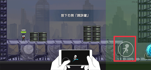 2、按下右侧跳跃键即可跳跃面前的障碍物,长按可以跳得更高,双击可连跳