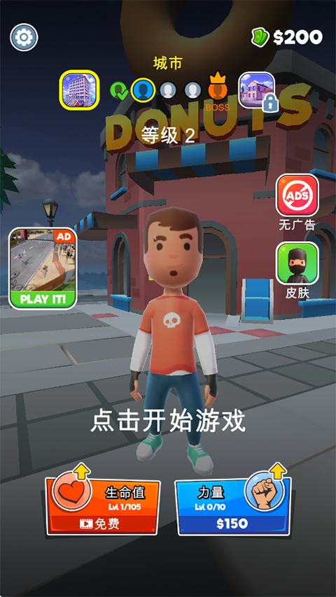 游戏的核心是打BOSS和过各种关卡,血条对战谁先清空谁输,考验反应力和节奏感。通过赢得比赛可以升级角色的力量和生命值,越玩越强的感觉不错。还有不同皮肤和配件能解锁,喜欢收集的玩家应该会很开心。