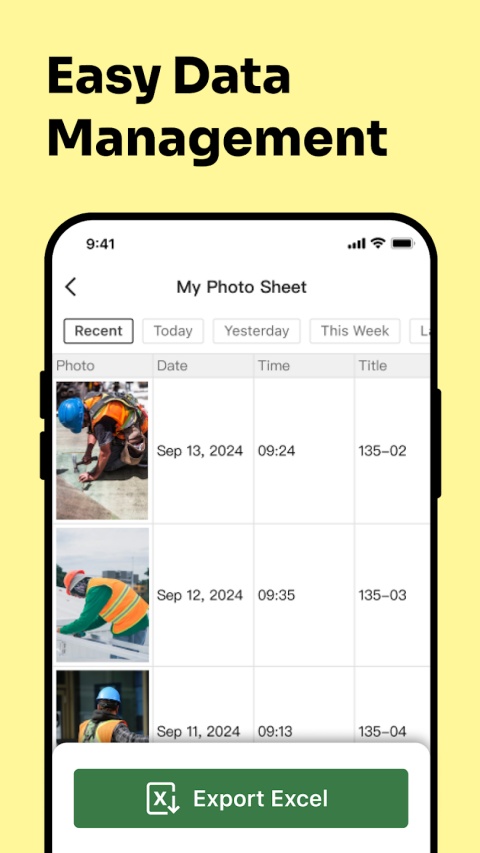 - 将照片导出为 PDF 或 Excel 文件用于报告