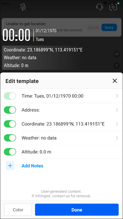 - 包含地图、坐标、天气、备注、公司徽标、名片、标签、海拔等信息,打造全面的照片记录