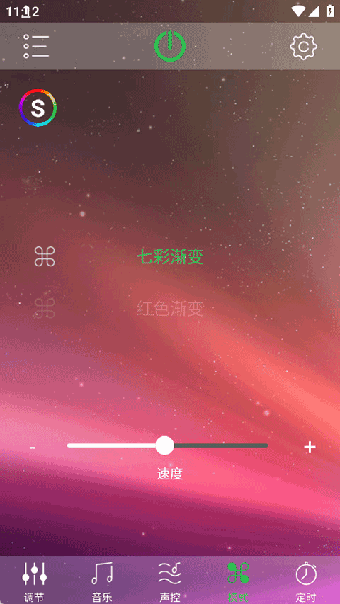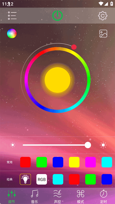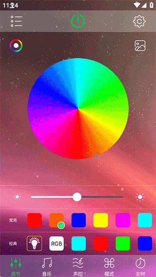 2、进入主控制界面,点击“颜色”或“色环”区域,滑动手指即可选择您想要的静态氛围色。