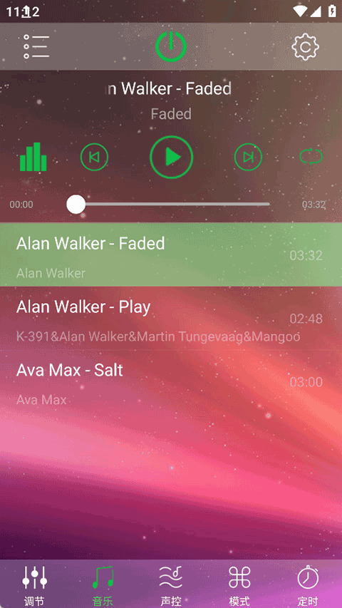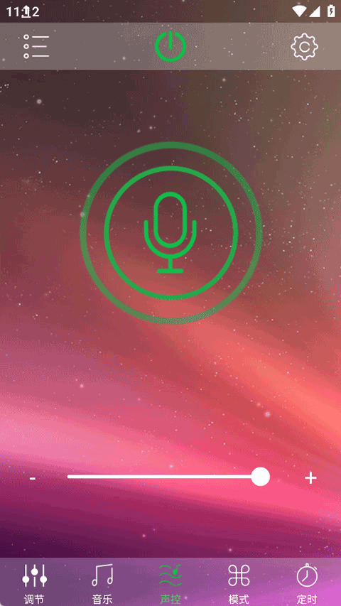 4、切换到音乐选项卡,App会根据手机播放的声音自动捕捉节奏,使灯光随之跳动。