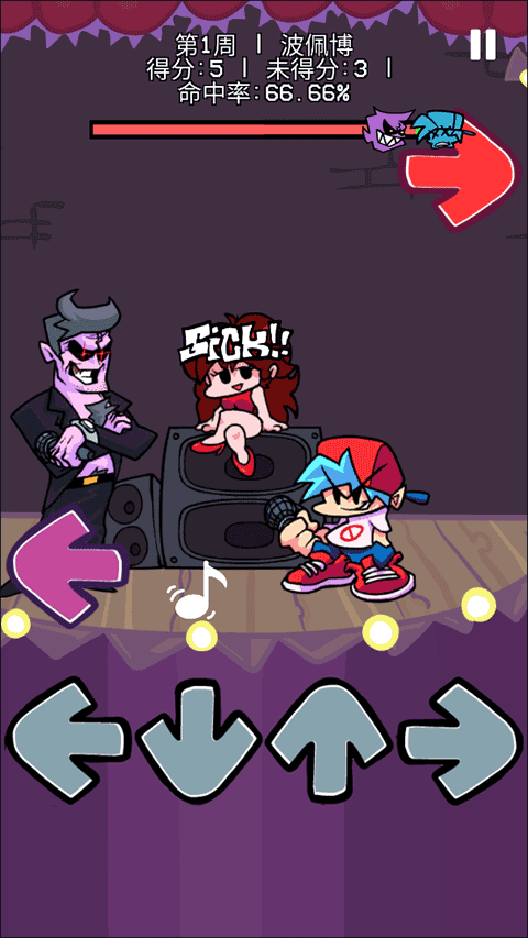 周五夜放克跳舞机是一款有着经典美式卡通画风游戏,节奏感十足的音乐节奏类休闲游戏,讲述了玩家想和女朋友约会,那就要用音乐和跳舞来取悦女朋友,以及利用音乐驱赶阻碍的敌人。在这个游戏里有着大量好看的皮肤,众多魔性的音乐,你需要先观察并记住你对手的舞步,并予以回馈,跟随按键操控你角色进行歌唱跳舞,累积分数看谁更加厉害。有感兴趣的小伙伴,快来一起来加入这场让人无比兴奋的音乐盛宴吧!