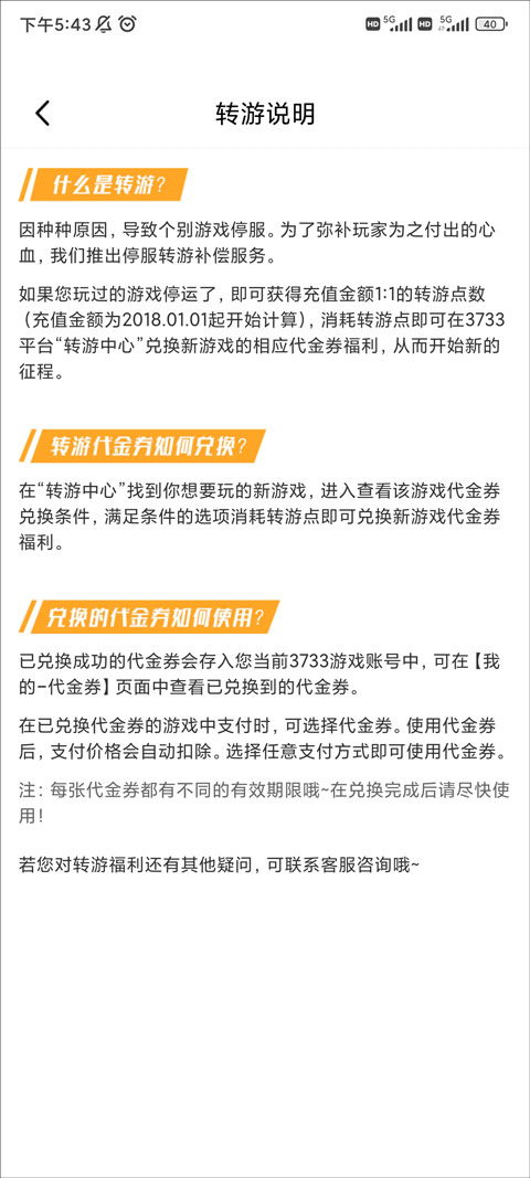 转游中心是指个别游戏因为种种原因停服,为了弥补玩家为之付出的心血而上线的转游服务。如果您玩的游戏停运了,即可获得充值金额1:1转游点数,消耗转游点数可兑换其他在运营游戏的代金券,从而开启新的征途。