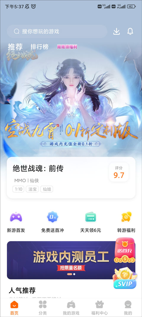 免费首充、手游礼包、648充值卡、大额代金券让你优人一级!