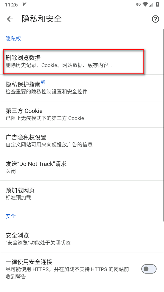 5、使用 Google 安全浏览功能保护手机。Chrome 内置了 Google 安全浏览功能。当您尝试访问危险网站或下载危险文件时,该功能会向您显示警告以保护手机的安全。