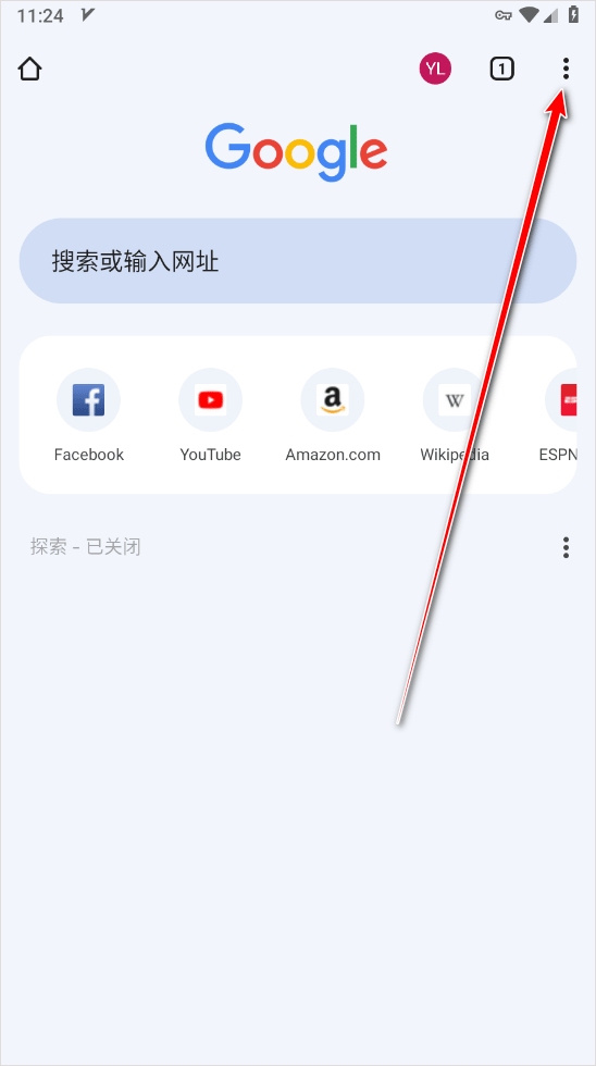 1、首先说说手机谷歌浏览器设置无痕浏览,在首页点击右上角,进入设置;