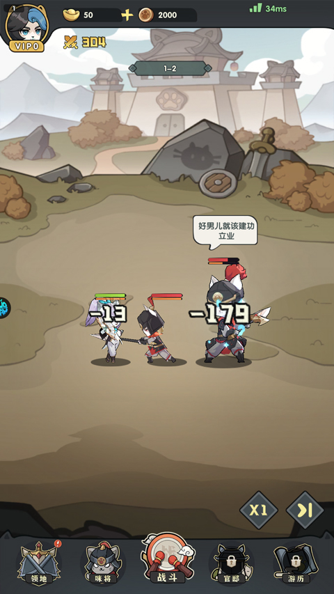 2、游戏采用回合制战斗模式,玩家需根据武将属性和技能制定战术。