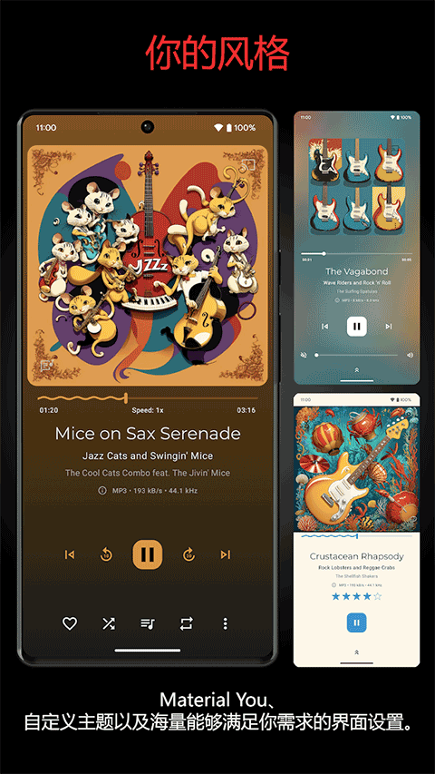 4、app支持深度定制界面和播放设置,并提供高质量的音频体验