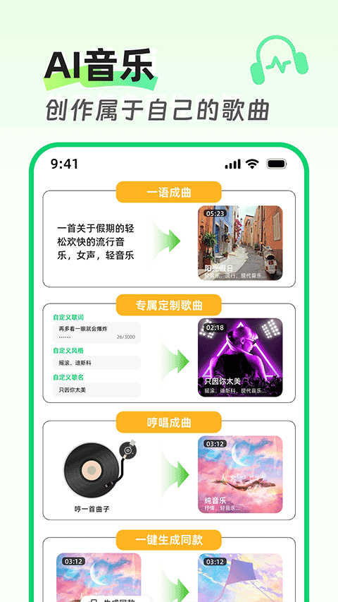· 智能编曲: 为你的人声旋律自动配器,或根据情绪生成背景音乐,完美用于Vlog、播客和游戏。