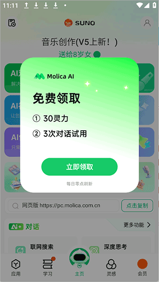对于我来说,Molica AI最大的吸引力在于它能帮我快速完成一些复杂任务,比如写文案、策划活动或者设计旅行方案。虽然目前没有会员兑换码活动,但可以通过免费领取灵力来使用部分功能,这也挺贴心的。