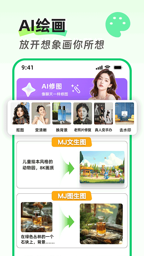 · 多种艺术风格: 涵盖水墨、油画、卡通、二次元、写实等数十种风格,满足你的一切创作欲。