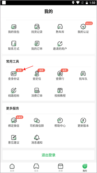 1、进入到软件主界面,点击下方的菜单栏我的,选择常用工具中的“查身份证”。