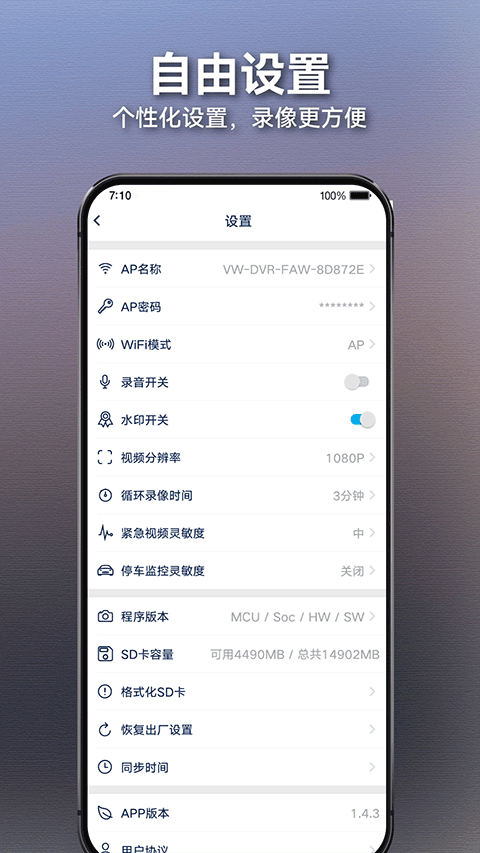 用户可根据自身需求调整记录仪的参数,如调节循环录像时间、录像分辨率及紧急视频灵敏度等,满足多样化需求。