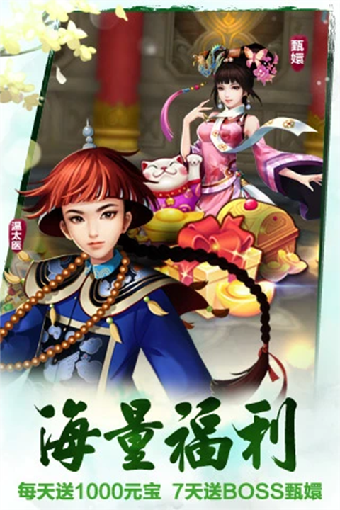 玩起来的话,感觉福利挺多的,每天都能送元宝,七天内还能拿到BOSS级的甄嬛卡牌。配音也都是电视剧里的原班人马,听着特别亲切。游戏里有好多玩法,比如卡牌收集、养成、装备打造什么的,听起来很丰富。