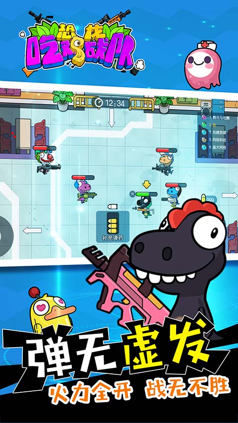 恐龙吃鸡战队官方正版是一款以恐龙为主题的吃鸡类2D游戏,玩家即将迈入卡通Q版的恐龙世界,与好友组建自己的恐龙战队,在战场上与其他玩家展开激烈的射击竞争。恐龙队员们穿上各种卡通恐龙套装,配合强劲枪支,再带上可爱的宠物,一起蹦蹦跳跳进地图,这轻松愉快的气氛,让玩家畅享欢乐对局。