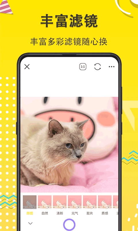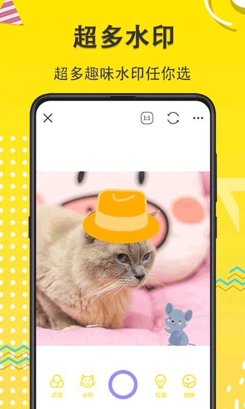 1、能随心添加文字哦,超萌贴纸随心用,超多滤镜随你换,宠物值得拥有它们自己的相机
