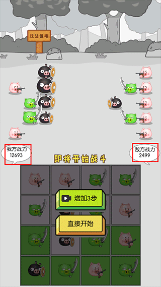 4、玩家可以根据自己的战斗力与敌方比较,随后即可开始游戏;