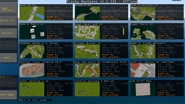 棘手的机器(Tricky Machines)是一款基于物理的赛车游戏,逼真的3D画面设计,各种不同的赛车,任你去解锁驾驶,驾驶自己的赛车,不断变化的游戏地图,在不同的赛道当中进行穿梭。在可能包括跳跃、物理谜题、捷径或只是在赛道上漂流的赛道上获得最佳时间。在这里您可以驾驶具有不同机械特性的后轮驱动、前轮驱动或全轮驱动的跑车。游戏中的一些赛道包括重型机器、船只或分段卡车,需要在课程结束时将其停在狭窄的地方。玩家还可以在游戏内对关卡进行编辑,能给你带来不一样的游戏乐趣,感兴趣的朋友快来下载试试吧!