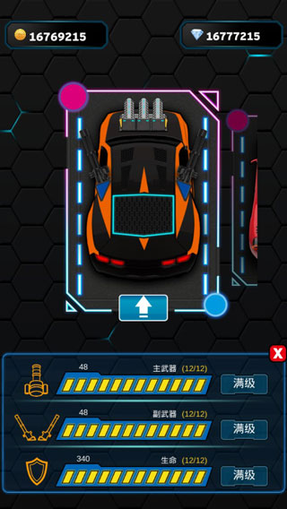 由于该游戏是结合赛车竞速与射击这两项组合,因此在玩家战斗的过程当中,会有金币掉落,而金币主要的作用是能够提升赛车炮火的总体实力,增加主炮威力,提升副炮火力,增加赛车强度,这些都能让你在比赛中享受更为刺激的战斗欲望。