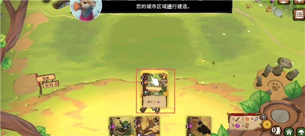 4、建造建筑需要花费的资源显示在卡牌左上角,满足即可建造,目前我们已经有了木头,还需要树脂。