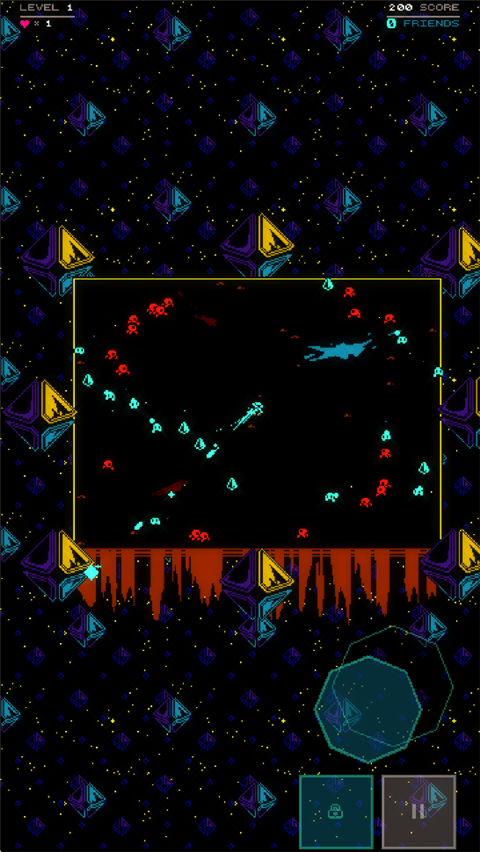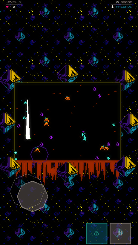 萨特林手机版(Satryn)是一款双摇杆射击游戏,玩家将操控角色在无限波次敌人的关卡中射击,解救同伴。游戏采用双摇杆操作设计,左摇杆控制角色行动,右摇杆瞄准射击,充满考研玩家的协调能力。萨特林手游采用无限关卡的设计,玩家清除当前区域所有敌人后,自动进入下一区域,难度逐步提升,且玩家每解救一个同伴都会提高分数倍数,当拯救60个朋友时,玩家会增加一个额外生命,而每获得75000分时,游戏中会出现能量分子,收集它们可增强能量。