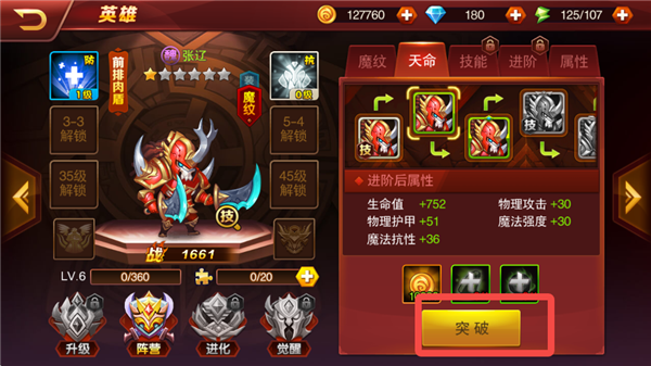 天命进阶后可提升英雄的生命、物理护甲、魔法抗性等属性。