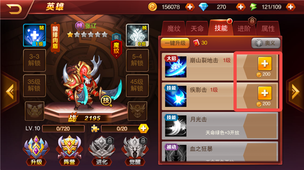 推荐魔法英雄使用,升级魔纹可提升基础属性与被动属性。