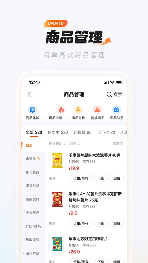 淘宝闪购零售商家版App支持自由选择配送范围、配送方式以及设定第三方派送费用,商家可根据店铺情况随时调整。商家还可以在线查看、结算订单,详细掌握门店每日的收入明细,便于随时调整营业信息、商品库存。