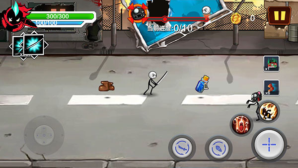 4、进入战斗关卡,玩家们可通过操控火柴人进行释放技能和躲避敌人的进攻;