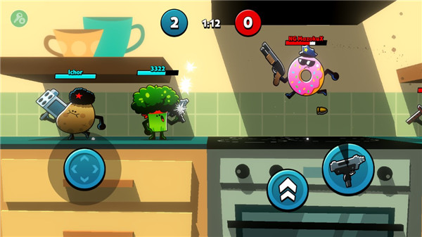 《食物帮派》是一款非常有趣的食物主题大乱斗手游,游戏里玩家扮演各种食物角色,用武器互相攻击,目标是在保证自己安全的情况下击败其他玩家。游戏有14个独特的角色和50多种技能可以选择,还有丰富的关卡和强大的BOSS等着挑战,特别是一些有趣的BOSS设计让人忍不住想一直玩下去。新手教程也很简单,主要就是操作方向、跳跃射击这些基本动作,然后就可以和其他玩家匹配对战了。