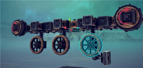 4、履带使用铰链制作,此时使用的工具为高级建造,履带板要嵌入负重轮内一小部分以绷紧履带。