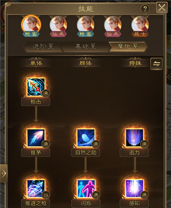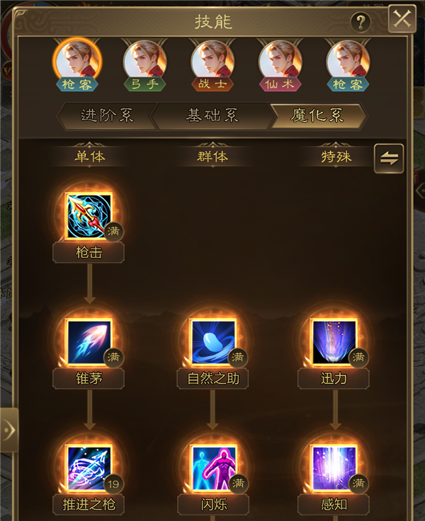 魔枪对目标造成伤害,并且基于自身的魔法防御会造成额外的伤害。魔化枪客拥有者枪客的高防御,神兵技能契合了这一个特点,基于魔法防御让枪客的单体输出也有一席之地!