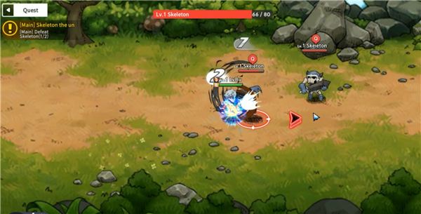 1、玩家可以操作最多3名角色组队,每个英雄拥有独特技能和属性,通过点击进行移动和攻击。