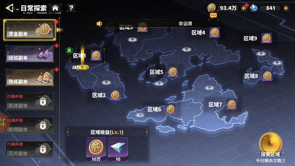 日常副本,可获得金币、经验、熟练、机体、机师、芯片相关资源。