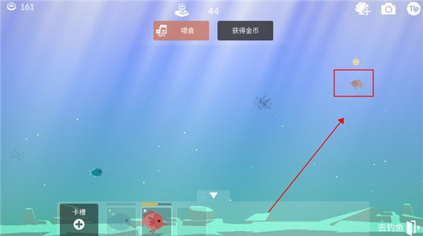 5、如果你要放的鱼过多,卡槽不够了,可以点击下面卡槽的+号,选择使用金币购买新的卡槽就可以了