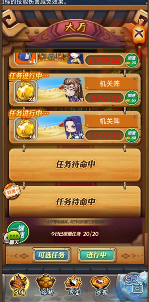3. 奇遇翻新,更多弟子、装备、材料加入;