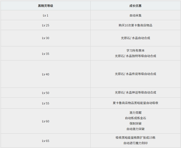 随着黑精灵等级提升,光原石自动合成及自动突破、自动采集等需要耗费很多时间的事情黑精灵都可以代为服务喔!