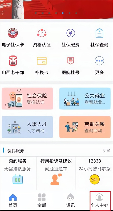 1、打开民生山西App,点击右下角的个人中心,点击进入;