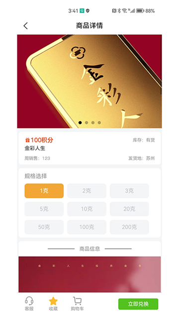 2、提供多样化的黄金产品,从金条到金币,不同重量的产品都有,货品种类丰富。