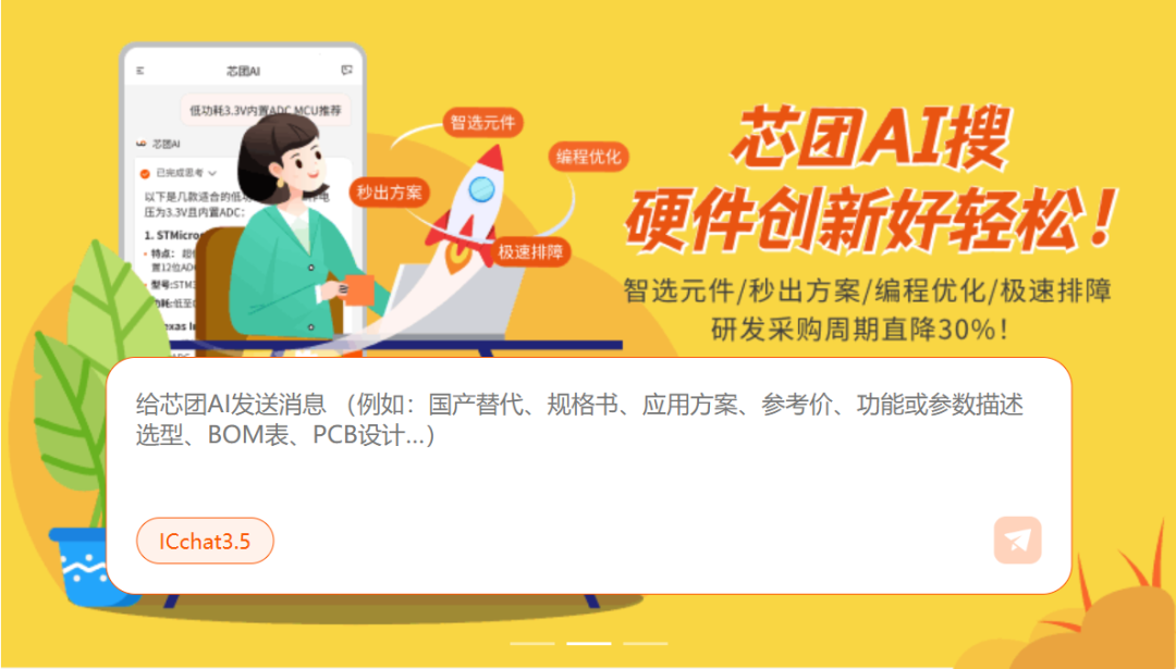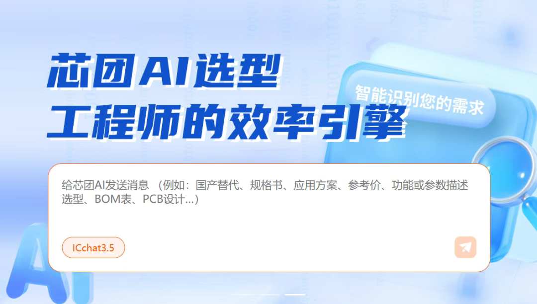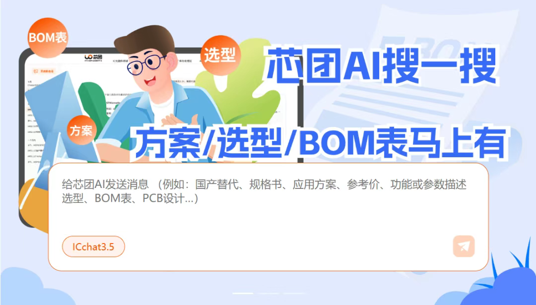 1、芯团AI搜一搜,方案/选型/BOM表马上有!研发采购周期直降30%!