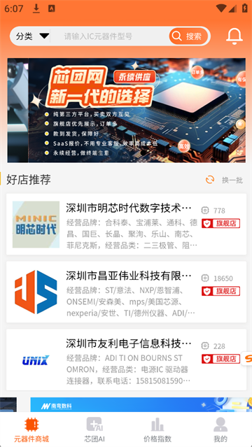 2、专"芯"为您服务!下载移动端发布商品、购买呆、废料更简单便捷!